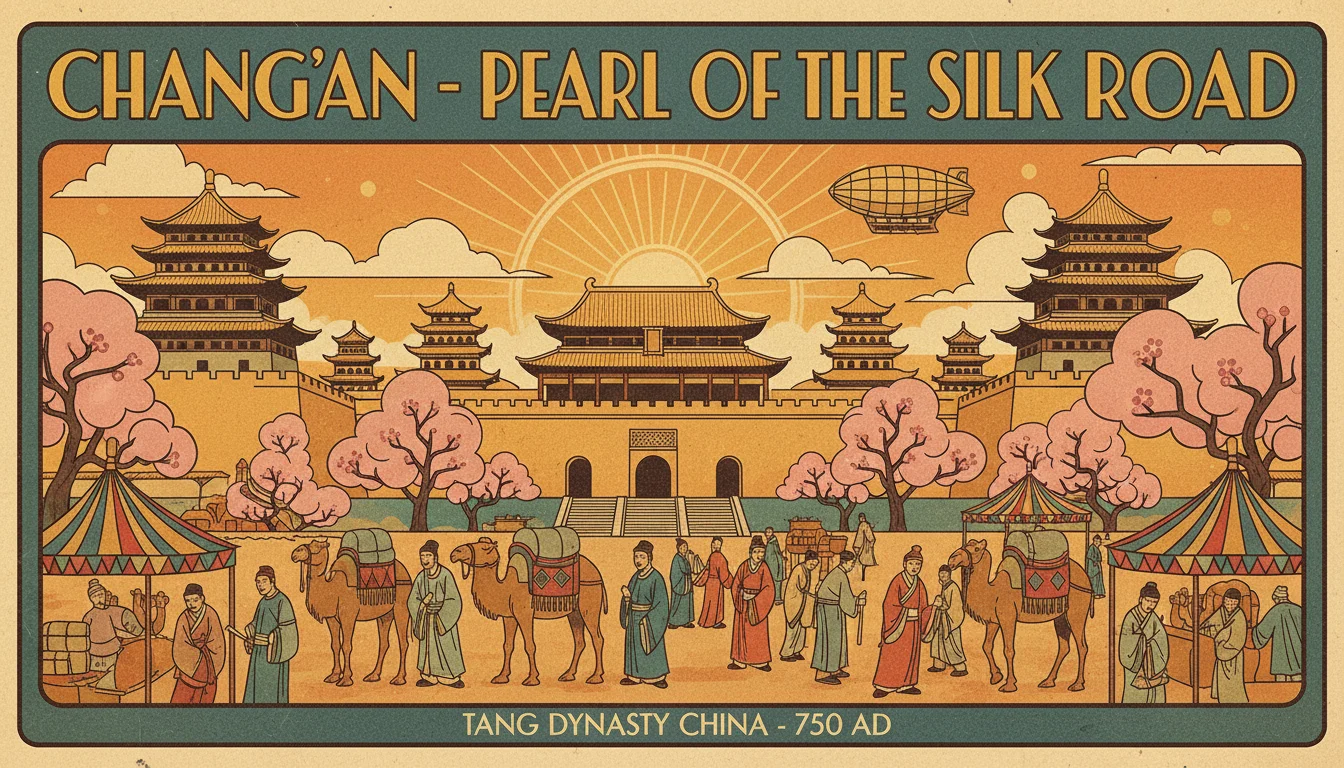 Welcome to Chang'an, capital of the Tang Dynasty and the undisputed center of the known world. With over a million residents, this is the largest city on Earth in 750 AD - bigger than Constantinople, Baghdad, and Rome combined. You're walking into a cosmopolitan wonderland where Persian merchants haggle next to Korean diplomats, where Buddhist monks debate Daoist priests, and where the wine flows as freely as the poetry.