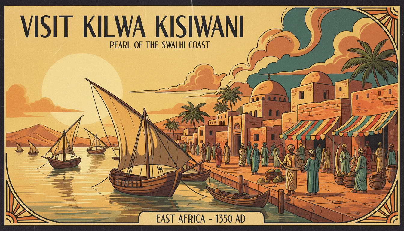 Welcome to Kilwa Kisiwani, the jewel of the Swahili Coast. Around 1300 AD, this small island off present-day Tanzania controls the gold trade flowing from Great Zimbabwe to the Indian Ocean world. The renowned traveler Ibn Battuta will visit in 1331 and declare it "one of the most beautiful and well-constructed towns in the world." You're arriving at the height of its prosperity.
